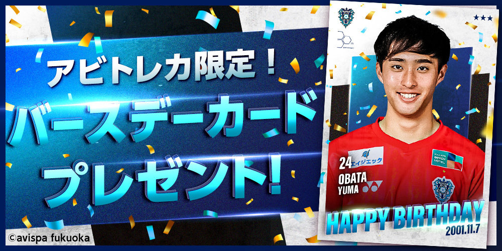 本日11月7日は #小畑裕馬 選手の誕生日🎂 おめでとうございます🥳🎉 #小畑裕馬 選手のバースデーカードが登場🎁✨ 受け取り期限は本日23:59まで⏰ 今すぐ #アビトレカ をチェック👇 avispa-dtc.com/?utm_source=X_… #avispa #アビスパ福岡 pic.x.com/dFlfLGWy9H