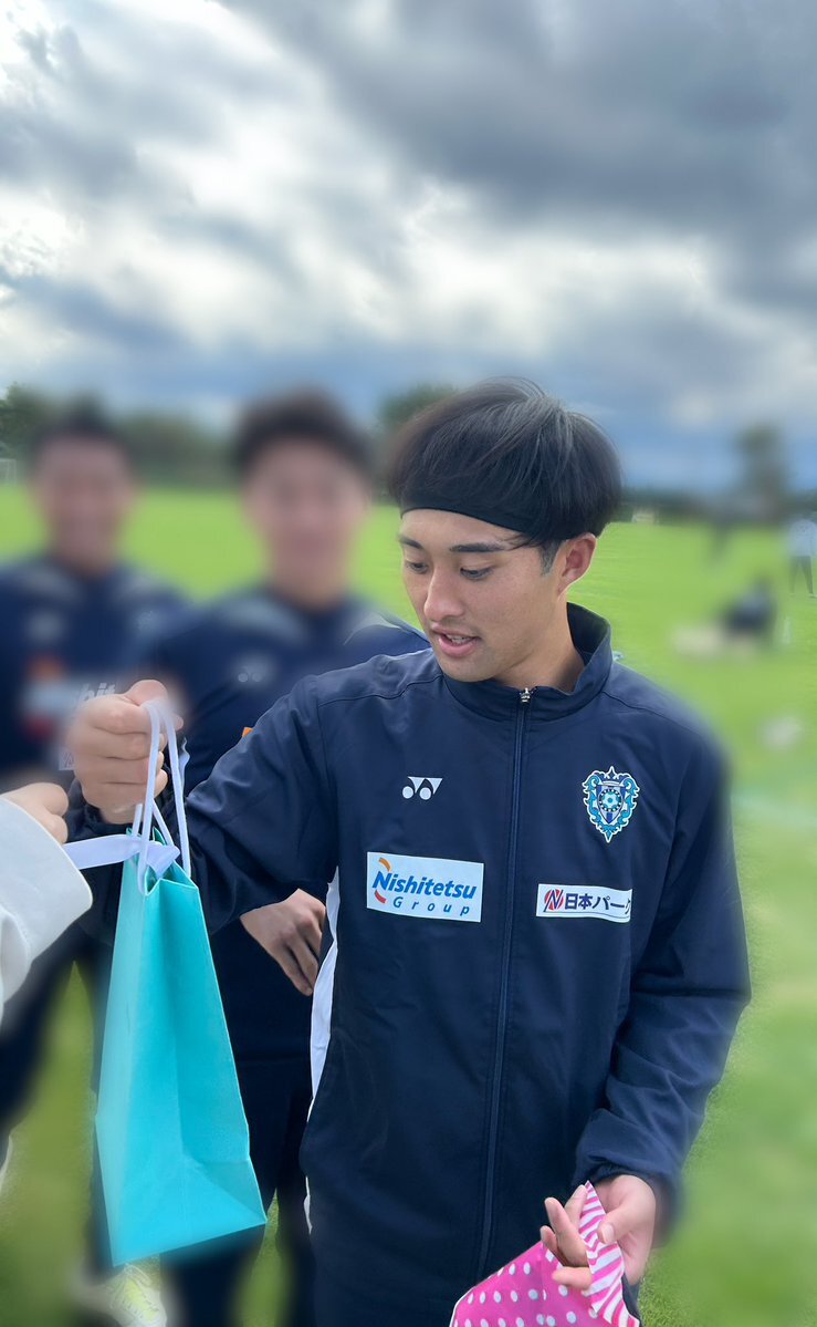 お誕生日おめでとうございますということで心ばかりですが差し入れでプレゼントお渡ししてきましたദ്ദി>ᴗ<)🎀直接ちゃんとお会いしてお祝いできて嬉しかったです🤍#アビスパ福岡 #小畑裕馬 pic.x.com/zJFDeGEfcF
