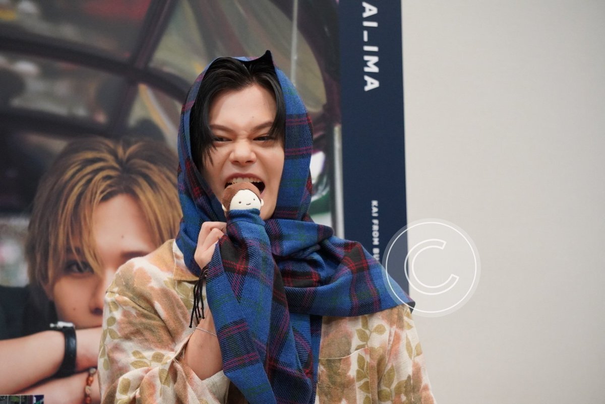 東京2部 ベルサール六本木 ①ユ〇クロのマフラーをおしゃれに着けて下さい! ②ぬいとあいあいマフラーして下さい! のお題に見事に応えてくださいました💙まさかのマチコ巻き。 お写真は優しい方にお譲りいただきました。 #カイのいま #超特急カイ #小笠原海 pic.x.com/uc3Mhnsboi