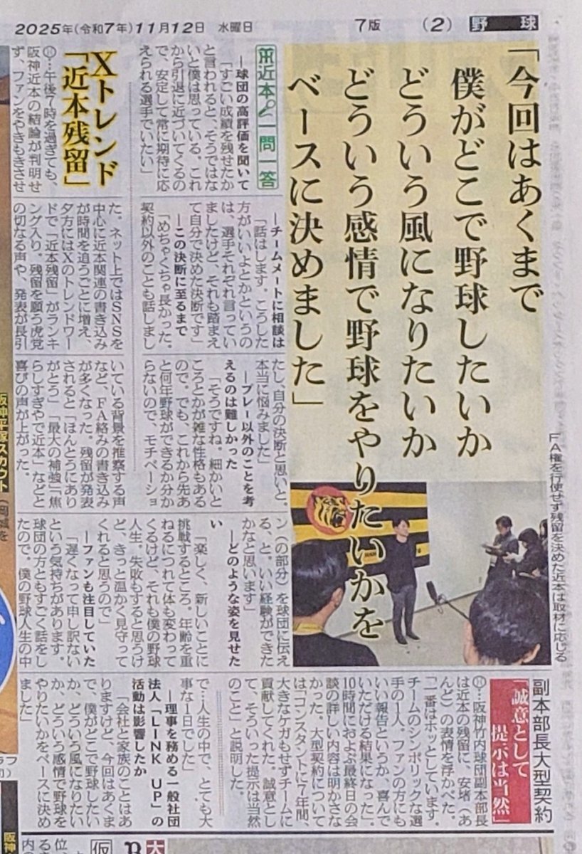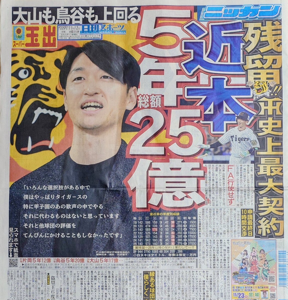 今朝の日刊スポーツさんの1面は勿論チカ!🐯 そら残留よ!お〜ん!🥰 #おはパソ #ABCラジオ #小縣裕介 #江崎友基子 #日刊スポーツ #近本光司 pic.x.com/HBzWmihNT2