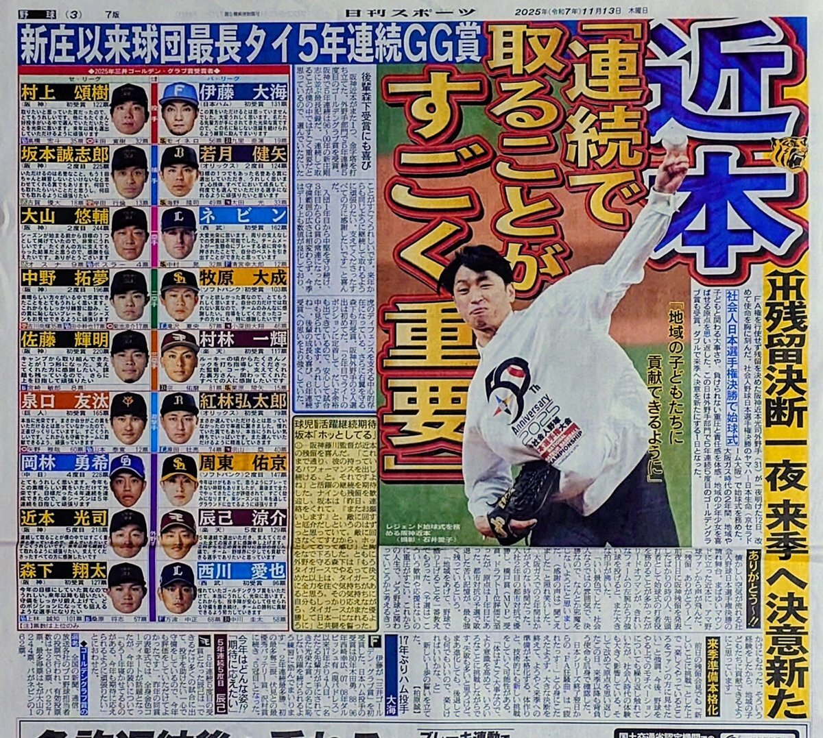 今朝の日刊スポーツさんの1面はテル!🐯 テルがサードでGG賞を受賞出来たのはマジで嬉しい!🤩🤩🤩🤩🤩 #おはパソ #ABCラジオ #小縣裕介 #江崎友基子 #日刊スポーツ #佐藤輝明 pic.x.com/QjEC6xQ32Z