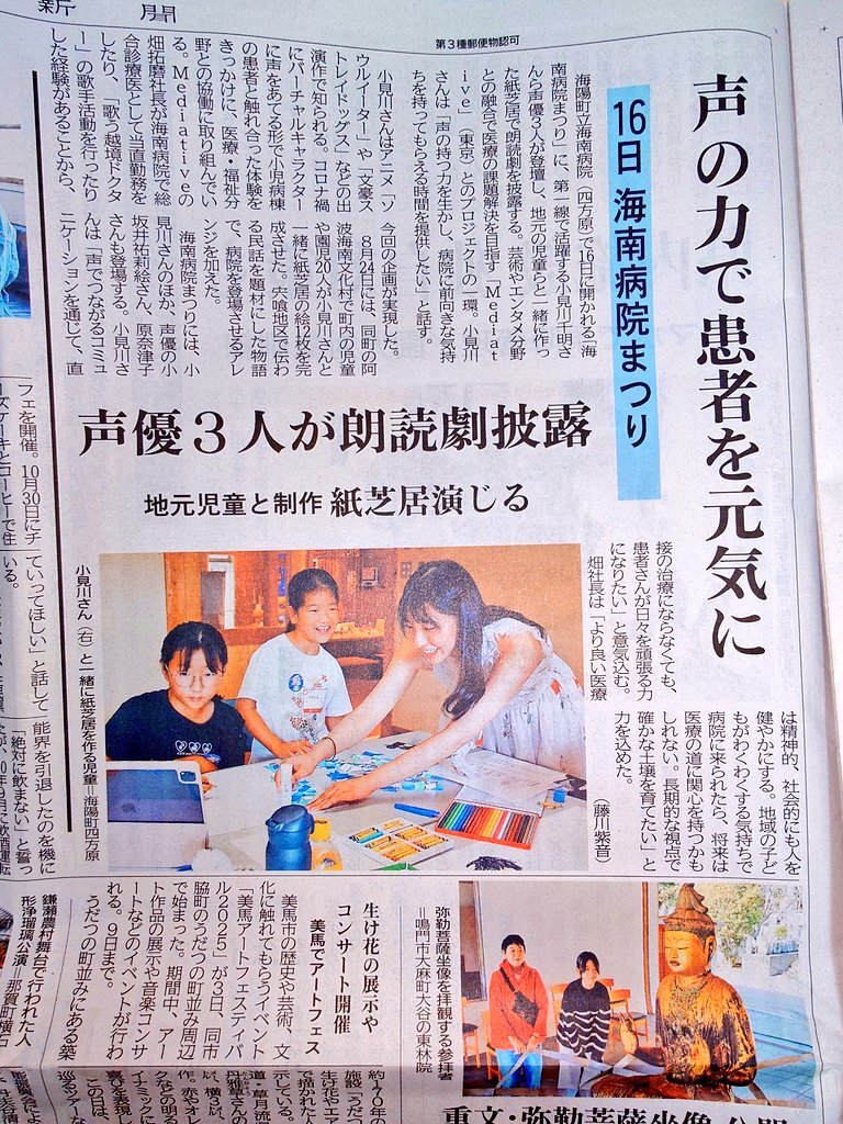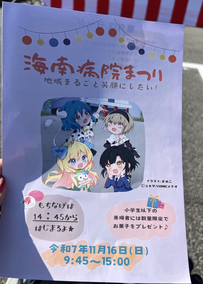 海南病院まつり楽しかったです🐮 紙芝居朗読良かったし、トークショーのお悩み相談も、子供たちの笑顔も見れていいイベントでした✨️ #邪神ちゃんドロップキック #海南病院まつり #小見川千明 pic.x.com/jfd3aeeecU