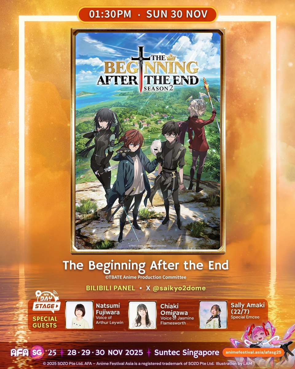 📢もうすぐ! 「Anime Festival Asia Singapore 2025」 『#最強の王様』ステージ 🔻日程 11月30日(日)13:30~ / BILIBILI PANEL ※現地時間 🔻ゲスト アーサー役:#藤原夏海 さん ジャスミン役:#小見川千明 さん スペシャルMC:#天城サリー さん(22/7) #TBATE #AFASG25 pic.x.com/a5mN3W7tqR