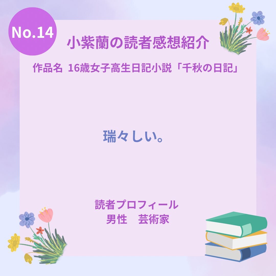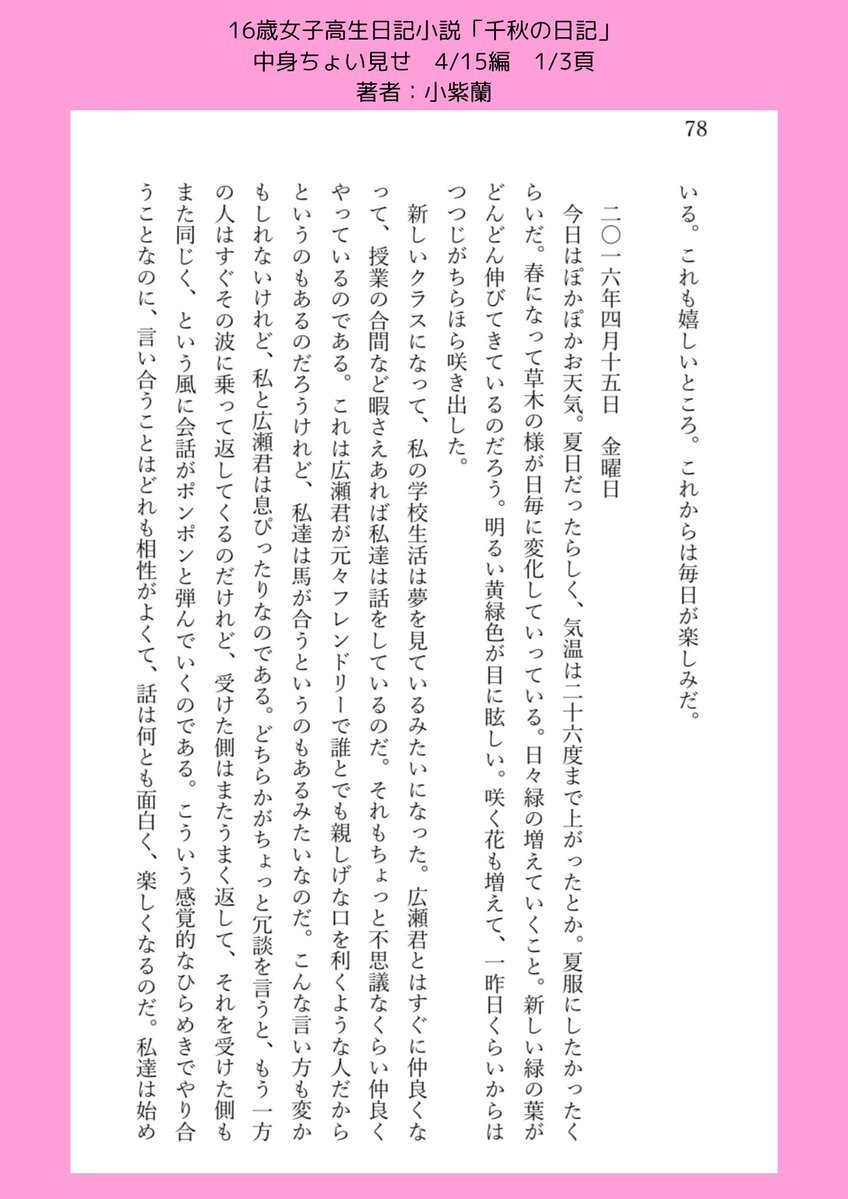 小紫蘭🖋️女子高生日記小説「千秋の日記」&大学時代に始まる恋愛劇「一輪のコスモス」他 計7作📚@ran_komurasaki