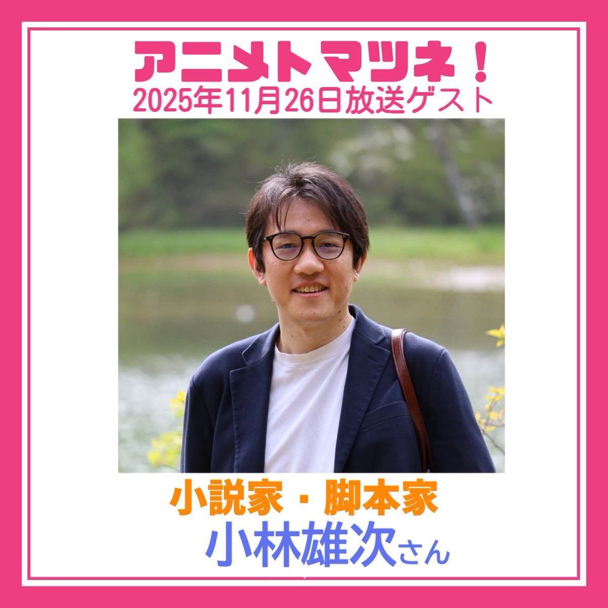 本日の#アニメトマツネ! ゲストは #脚本家#小説家#小林雄次 さん(@kobayuji)です! どのようにして脚本家になられたのか 初めてした仕事などたくさんお聞きしていきます! お楽しみに! x.com/animetomatsune…