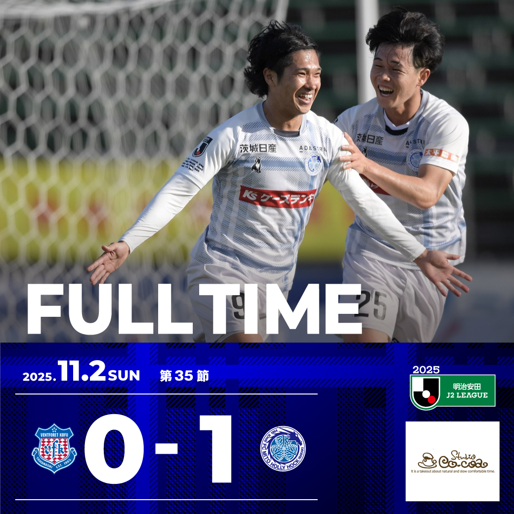 2025明治安田J2リーグ第35節 ⏰試合終了 甲府0️⃣-1️⃣水戸 🔻試合結果はコチラ mito-hollyhock.net/match/games/35/ 熱い応援 ありがとうございました🔥 🆚#ヴァンフォーレ甲府 🐲#水戸ホーリーホック ✅#1102甲府戦 #小野写真館 次戦ホーム #1109大宮戦🔥 📅11月9日(日)14:00キックオフ