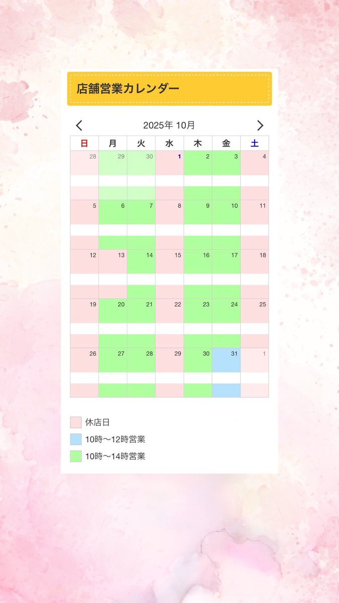 10月の店舗営業予定です。 どうぞよろしくお願いします。 #米粉スイーツ自販機 は24時間営業中ですので、いつでもどうぞお立ち寄り下さい。 #米粉スイーツ #自販機スイーツ #くぉーれ #米粉 #手作りおやつ #焼き菓子 #自販機 #グルテンフリー #小麦粉不使用 #白砂糖不使用 #岡山市北区庭瀬 pic.x.com/s481oLxCUW