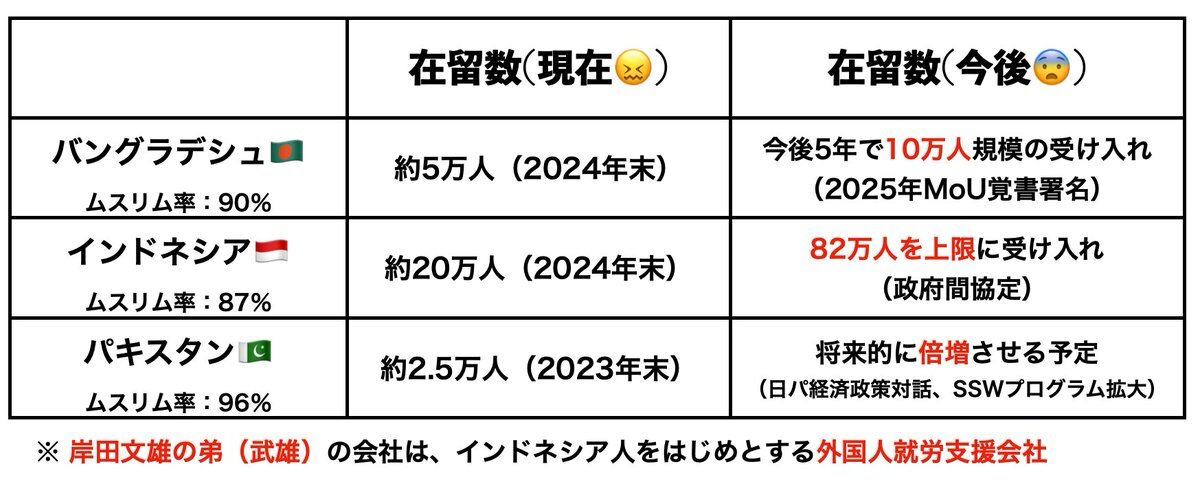 今でも多すぎるのに更に入れるの⁉️犯罪予備軍にしか思えないし家族帯同で来ないで欲しいわ💢💢 #移民ストップ #移民政策反対 #就労支援反対 #技能実習生反対 #日本を守れ #外国人優遇反対 x.com/yukokutv1/stat…