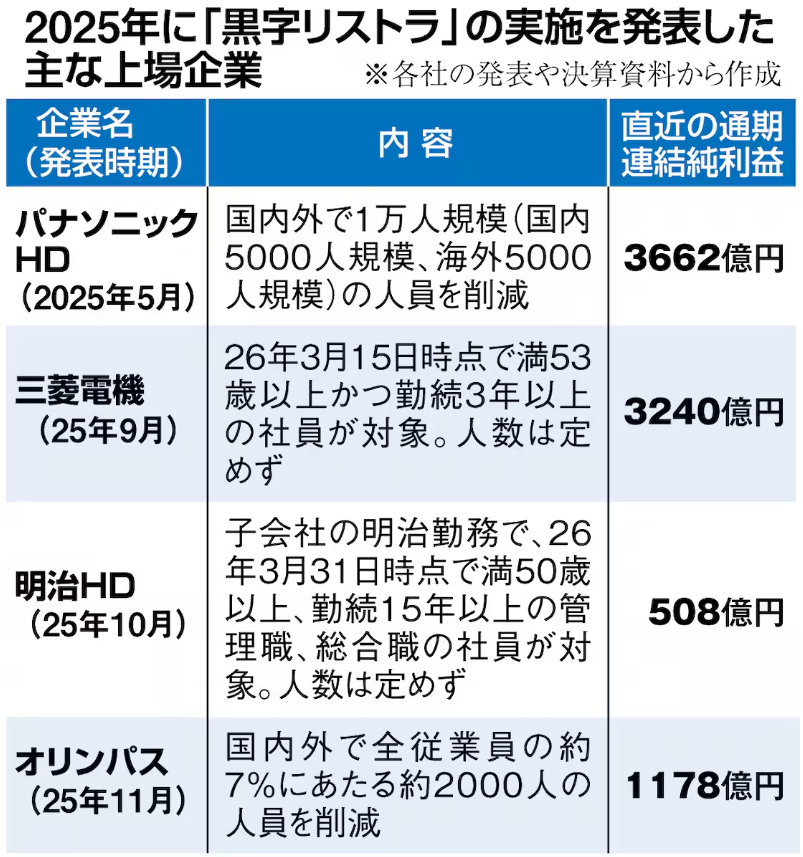 ほ~ら、きた。大企業が一斉に始めた。 日本人労働者を外国人に置き換える準備だ。 パナソニック、三菱電機、明治、オリンパス‥企業の「黒字リストラ」の実施を発表 sankei.com/article/202511…