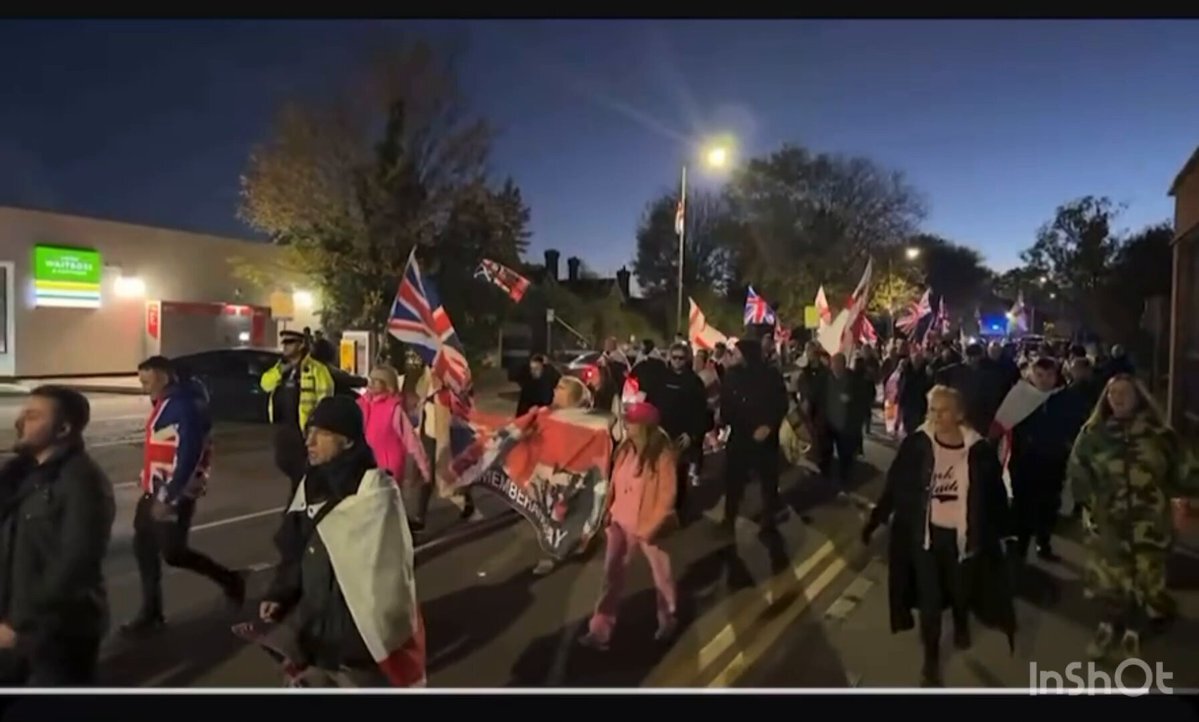 イギリスの列車内で10人以上が刺される無差別殺人未遂事件が起きたことを受け、「国を守れ! 強制送還を!」と叫びながら行進する地元の人たち⬇️ 明日の日本の姿。 #移民政策
