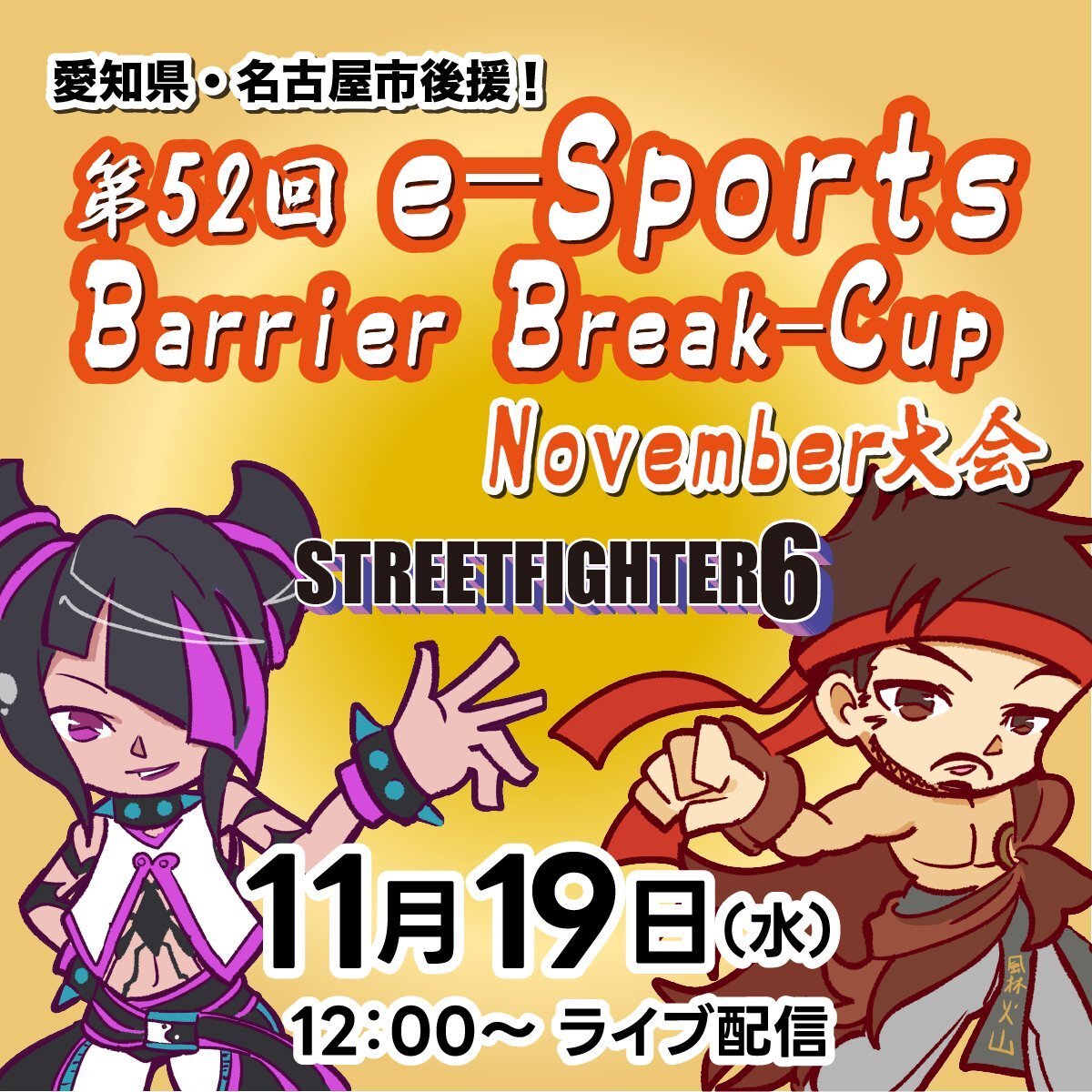 【第52回バリアブレイクカップのお知らせ】 来月はNovember大会が開催されます🎮 格闘ゲームで対決します!お楽しみに! 開催日時🍁 11月19日 12時00分スタート ライブ配信🔗 youtube.com/live/pgDl3BwId… #バリブレ #dela