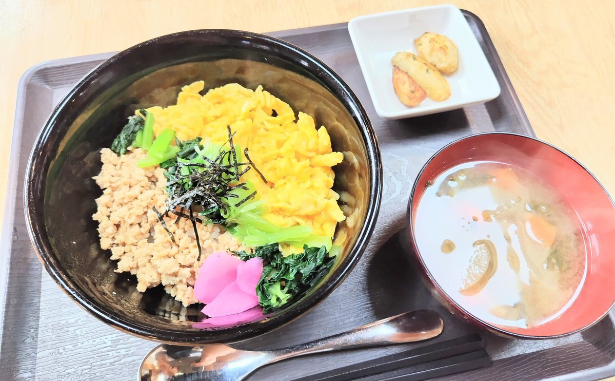 こんにちは、はな子です!! 本日の日替わりは、 三色丼です!! 本日の小鉢は、 フライドポテトです!! ぜひ、お越し下さい〜🤗 #カフェおおぞら #本日の日替わり #本日の小鉢 #就労支援B型 pic.x.com/ogLd004Lvm