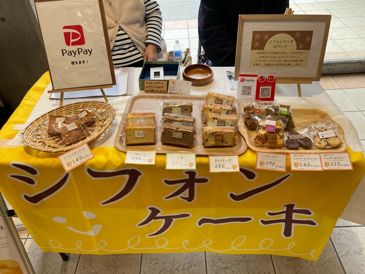 こんにちは。 寒くなってきましたね…🥶 昨日と今日、近畿大学さんへ販売にお邪魔してきました! 甘いものを食べて、この冬の勉強ももうひと踏ん張り頑張りませんか🍰🍪 #東大阪 #近畿大学 #近大 #シフォンケーキ #焼き菓子 #クッキー #就労継続支援b型 #作業所のお菓子 pic.x.com/YeBprqaCHe