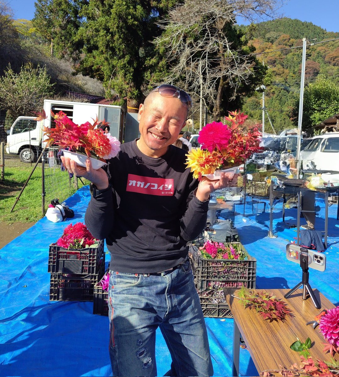 『尾ノ内渓谷紅葉祭』ダリア摘み取り・アレンジメント体験🍁🍂笑顔とお花が良く似合う「オガノコイシのおじさん」こと八宮松雪堂の八宮悟さん✨YouTube「オガノコイシのおじさん」是非チェックしてくださいね😉👍 #埼玉県 #秩父 #小鹿野町 #両神山麓花の郷ダリア園 #尾ノ内渓谷 #尾ノ内氷柱 pic.x.com/iDExUe1zxc