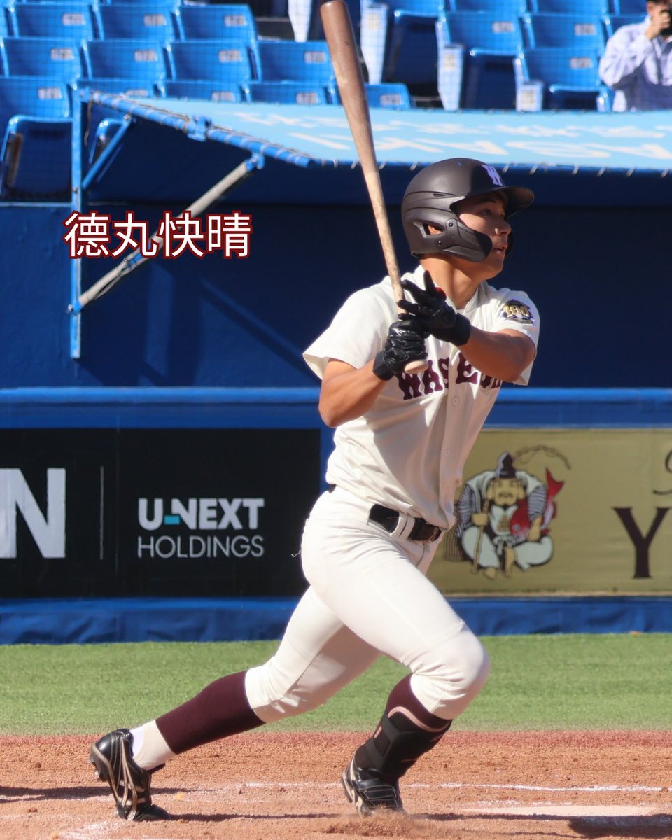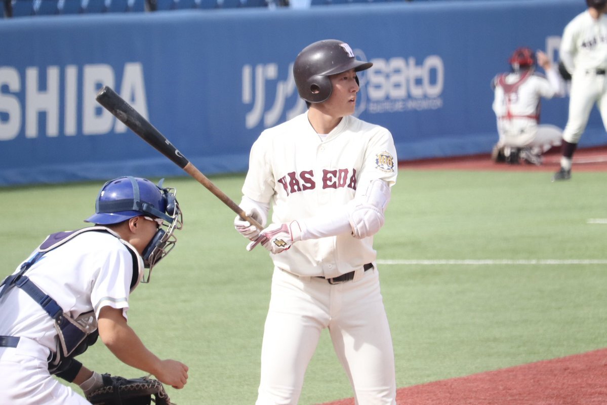 【東京六大学野球 フレッシュトーナメント】 早稲田大×東京大 夏の甲子園で2発放った尾形くん。 今日はレフト線へ鮮やかな二塁打。 天性のバットコントロール。 打てる捕手、やっぱりロマン👏 #尾形樹人 #仙台育英 高校 #大学野球 #高校野球 #甲子園 #東京六大学野球 #tokyobig6 #早稲田大学野球部 pic.x.com/eE6u8T9m5D