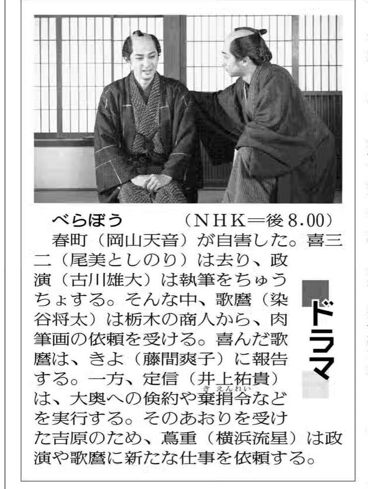 改めて!本日放送みたい!配信でも視聴可能!嬉し😆 #大河べらぼう #尾美としのり #風間俊介 x.com/nhk_chubu/stat…