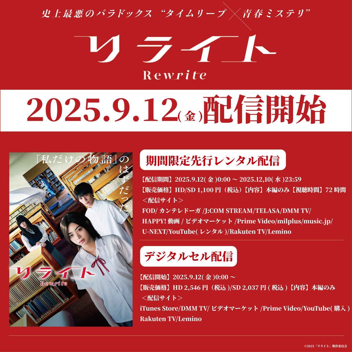 ⋰ #映画リライト 9月12日(金)より 期間限定先行配信&デジタルセル開始! ⋱ あの夏の20日間をぜひ何度でも…⏰ 詳しくはこちらから rewrite-movie.jp