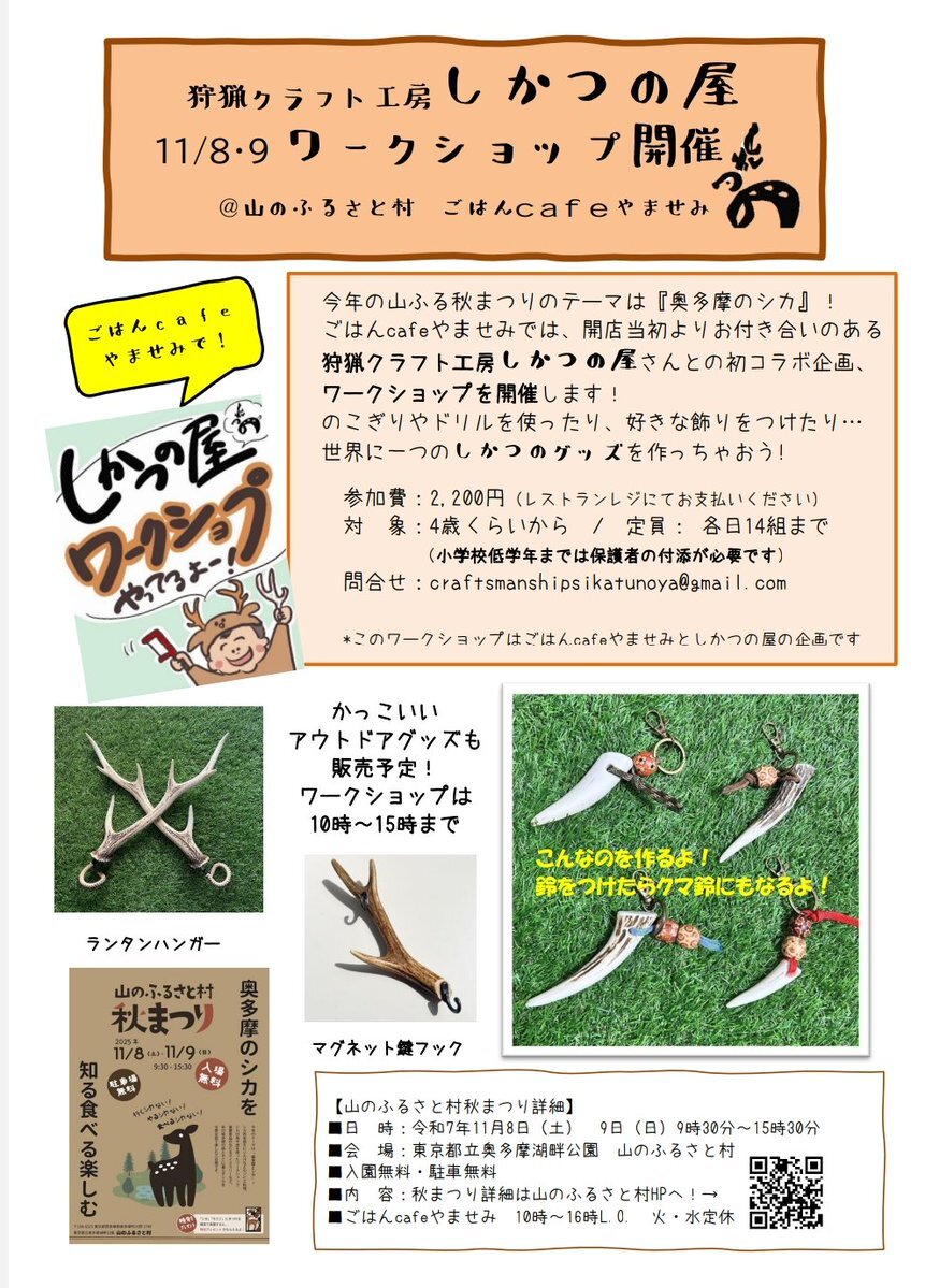 11/8(土)、9(日)開催の「#山のふるさと村秋まつり」のイベントスケジュールが出来ました! 皆さんのお越しをお待ちしております。 yamafuru.blogspot.com/2025/09/118119… #奥多摩 #山のふるさと村 pic.x.com/lUyWt8pn6R