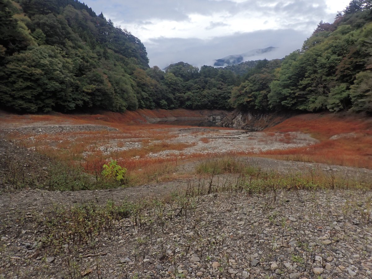 気温17.6度。雨が降ったり、曇ったりの #山のふるさと村 です。 湖の中だったところに、生えた草たちは、みんな紅葉しています。 水がふえたらお魚も紅葉を楽しめそうです♪ #奥多摩 #草紅葉 #奥多摩湖水位低下中 pic.x.com/PmnBnjFBig