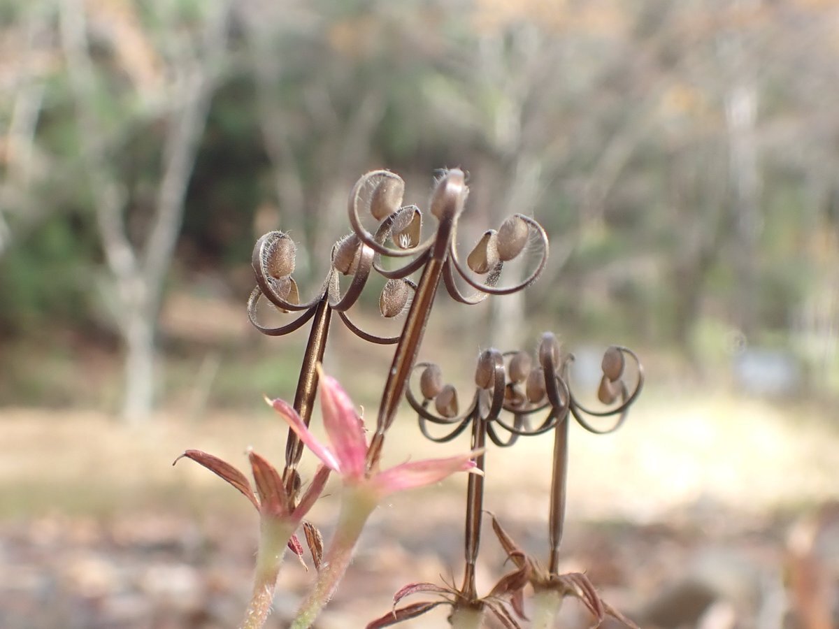 気温12.9度。葉の舞う音が聞こえる #山のふるさと村 です。 湖畔広場では、#ゲンノショウコ の神輿が、たくさん小さく賑わっているんですよ。よ~く見てみてね。 #奥多摩 #ミコシグサ pic.x.com/4SP8WOAsDe
