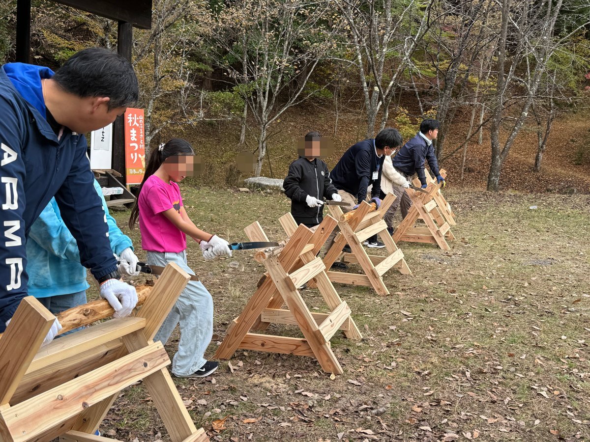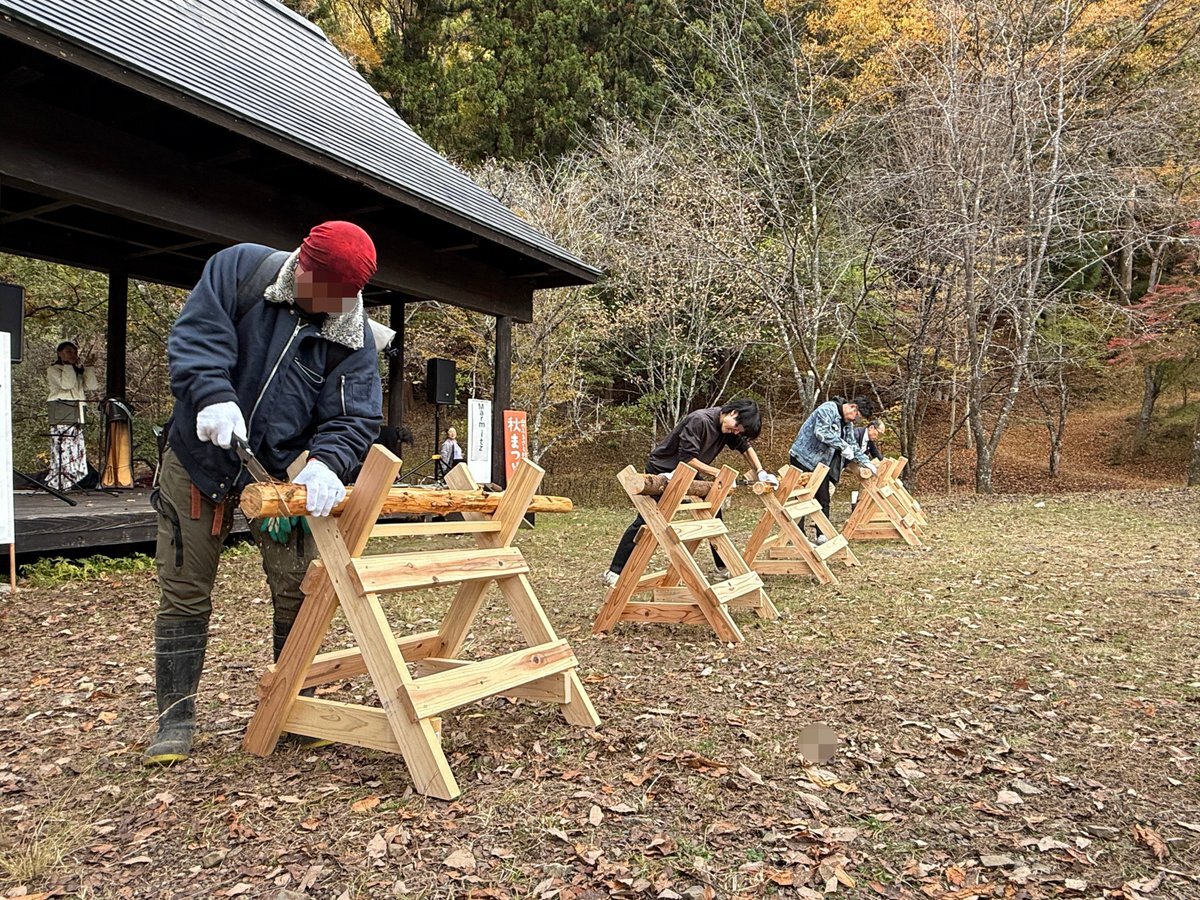 秋まつり1日目ラストイベント「丸太切り競争」! 大人の部、子どもの部、それぞれ白熱した戦いでした。最後まで丸太が切れなくても、素敵な参加賞がもらえますよ。 #山のふるさと村秋まつり #奥多摩 #明日もあるよ pic.x.com/dWjNz4G4T2