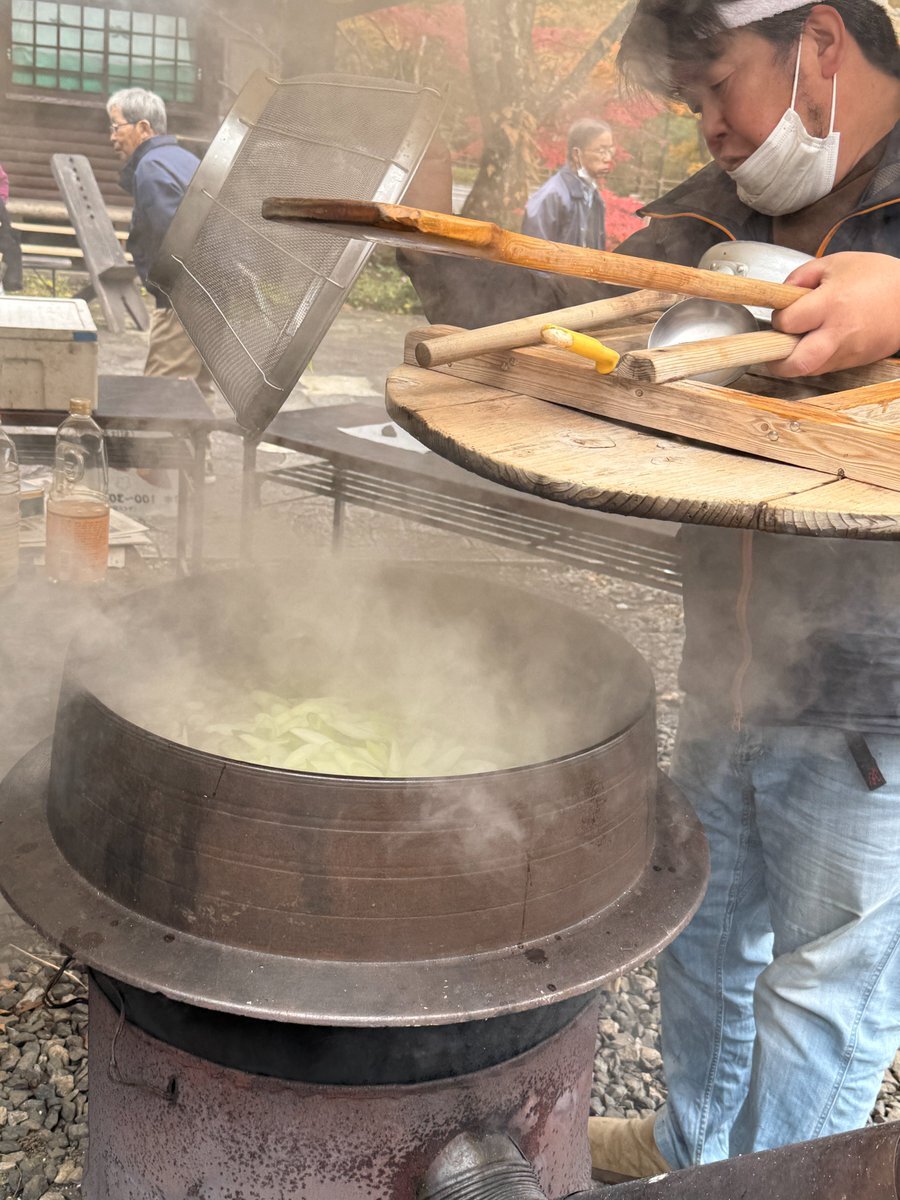 昨日大人気だったシカ汁、頑張って調理中! ひんやりした今日にはピッタリの焼き芋、五目おこわなどはもう食べられますよ♪ #山のふるさと村秋まつり #奥多摩 #ジビエはもう少しお待ちください pic.x.com/Ew0Ta74xEH