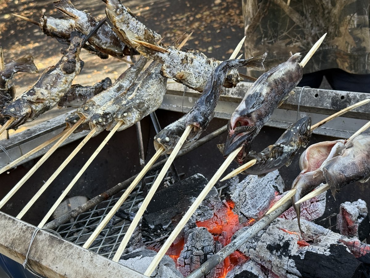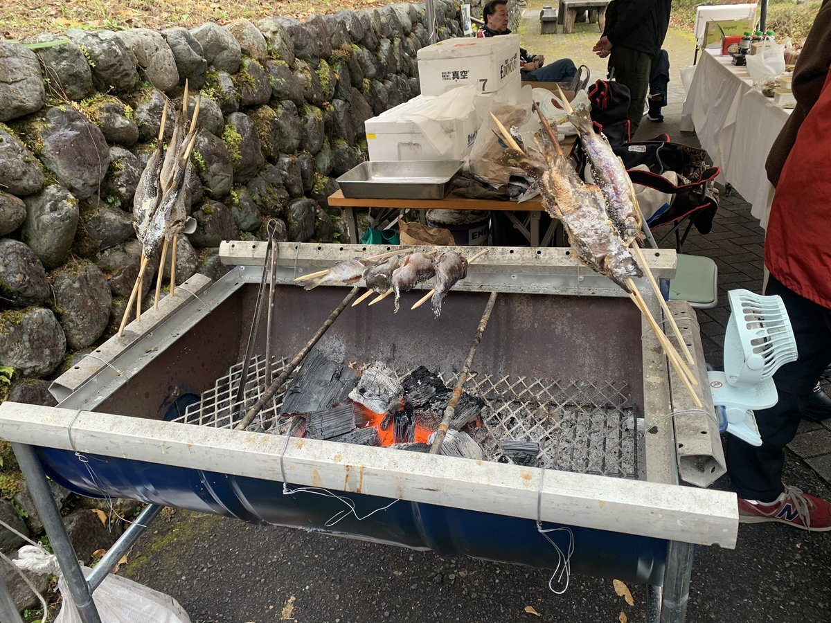 シカ汁、シカ串焼きの出来上がりはもう少し後…。 川魚の串焼き、#わさびいなり やフランクフルトはもう食べられますよ~! #山のふるさと村秋まつり #奥多摩 #ジビエ pic.x.com/Sehr5ndtHq