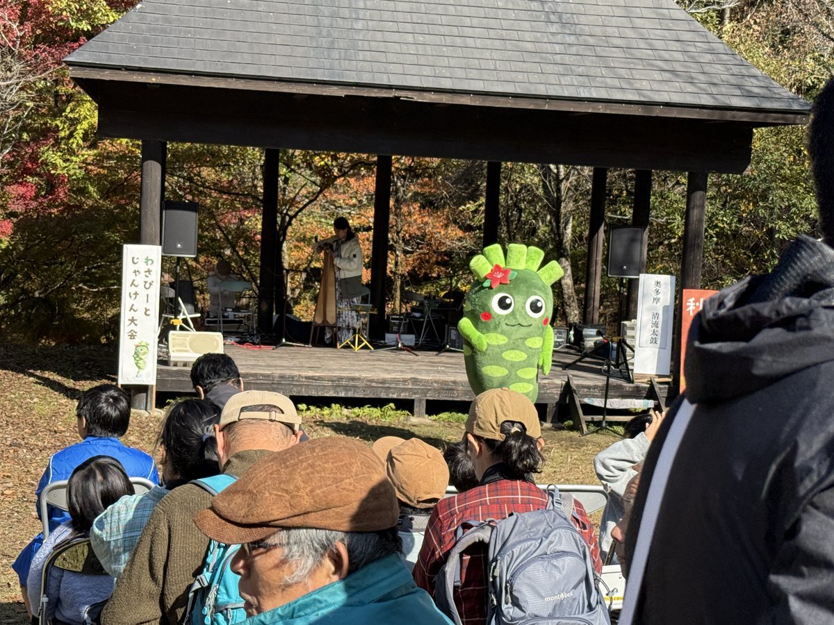 大迫力の #奥多摩清流太鼓 や豪華景品をかけての #わさぴー とじゃんけん大会、あずまやステージは盛り上がっています~! 見逃したという方、ご安心ください。どちらも午後にもう一度実施します♪ #山のふるさと村秋まつり #奥多摩 #山のふるさと村 pic.x.com/Hito3m2oE0