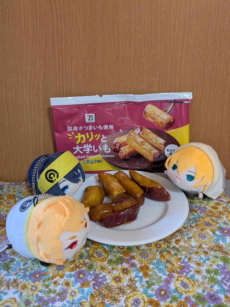 2025/11/7 (金) #金曜日だからおもち貼る #もちもちマスコット刀剣乱舞 #三日月宗近 #ソハヤノツルキ #山姥切国広 秋のおやつ〜😊🍠 #セブンイレブン 様の「カリッと大学いも」🍠〜 水飴パリパリ、いもはほっくり〜😊 よくできてる〜😊👍 おはようございます😊m(_ _)m pic.x.com/IVJsgDqLHS x.com/SeikoSugiy4129…
