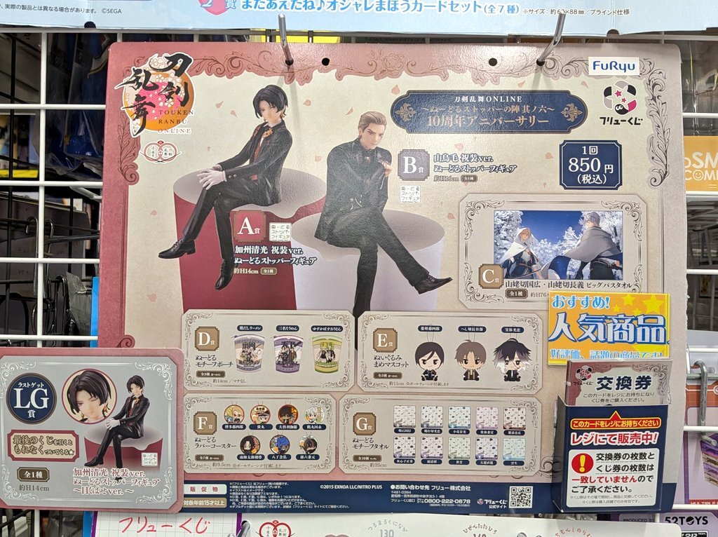フリューくじ 「刀剣乱舞ONLINE〜ぬーどるストッパーの陣 其ノ六〜10周年アニバーサリー」 まだまだ好評発売中です‼️💮 中古買い取りも入荷いたしました‼️✨ ご来店お待ちしております😊 #フリューくじ #刀剣乱舞ONLINE #加州清光 #山鳥毛 #山姥切長義 #山姥切国広 #イエサブ #秋葉原 pic.x.com/w8eLmclOf1