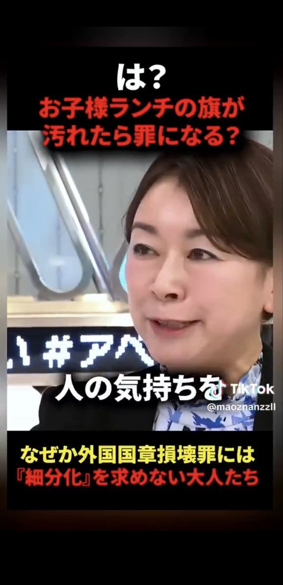 #山尾志桜里 やっぱお前はダメだ。他の国の国旗損壊は処罰対象で日本の国旗にペナルティがない、そこだけでも客観的に見れ頼なら政治家にも行政にも関わるべきじゃないな x.com/tokyomanana/st…
