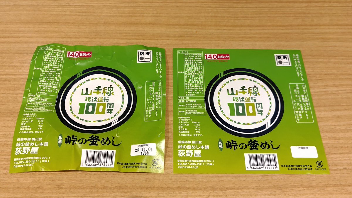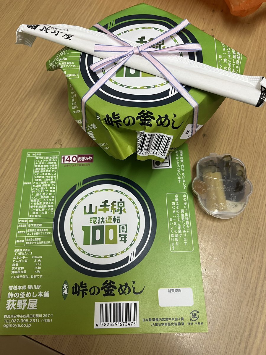 山手線環状運転100周年峠の釜めし、引き換えてきました。 釜めしと一緒に、折り目の無い掛紙頂きました。 うましっ!!︎︎😋👍 #山手線環状運転100周年峠の釜めし pic.x.com/Om6L7FuJYO