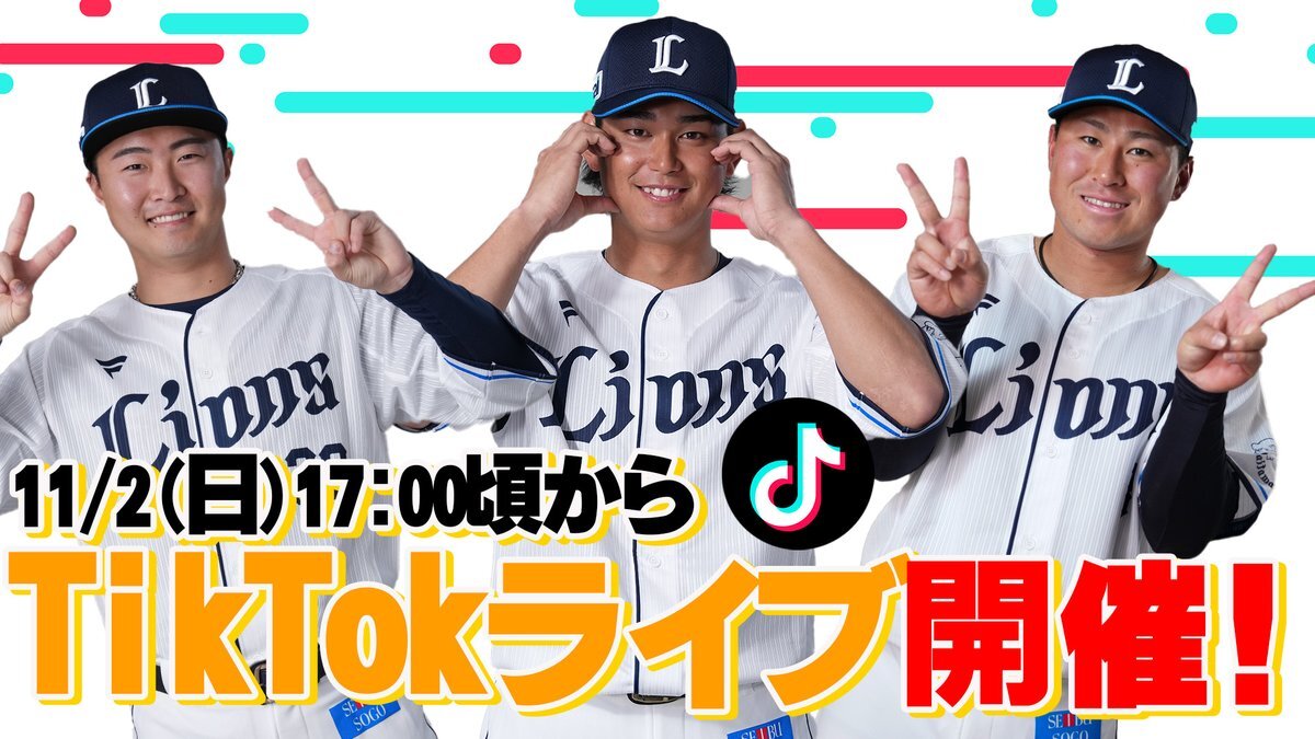 / 11/2(日)17:00頃から TikTokライブ開催! \ #西川愛也 選手 #山村崇嘉 選手 #渡部聖弥 選手が、ファンの皆さんからの一部の質問にお答えします! このポストへのリプライ&引用リポストで質問募集中✨ ▼TikTok tiktok.com/@lions.officia… ※出演選手は変更になる可能性がございます #seibulions pic.x.com/p97mm0R7j1
