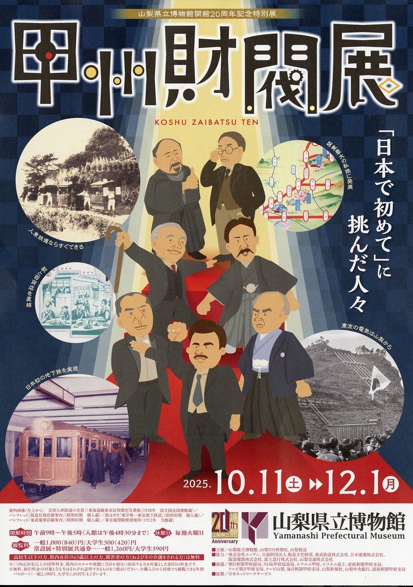 明治時代から昭和戦前期、鉄道や電力などの分野を中心に活躍した実業家たち「甲州財閥」。 山梨の富と人々のつながりを基盤とし、当時の社会や文化、生活に大きな変化をもたらした彼らに迫ります。 甲州財閥展 #山梨県立博物館 2025/10/11(土)~2025/12/01(月) cs.eplus.jp/web/share.html… pic.x.com/OTdzkML97W