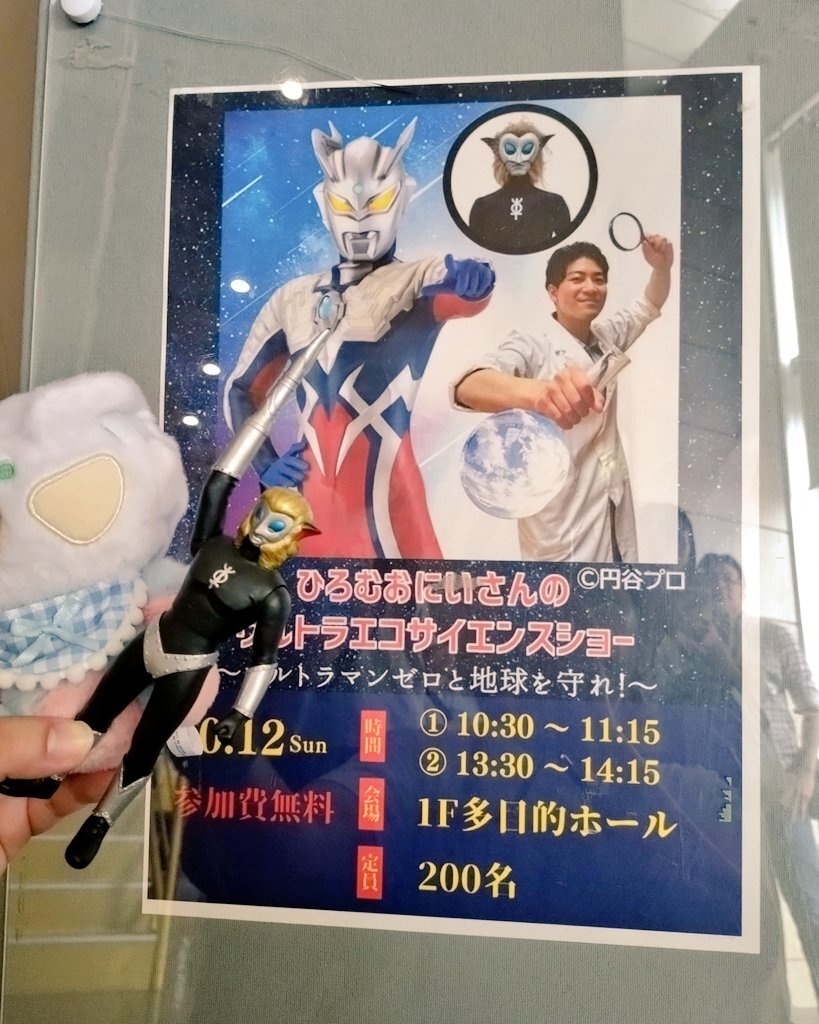 ホントだもん!ショーは撮影禁止で撮影タイムもSNSアップ禁止だけどホントにゼロが山梨に来たもん! ということでゼロ&ババrマグマ星人&かほお姉さんという気合の入った布陣のショーでした! 実験は普通に面白くて感心してしまった #山梨県立科学館 #ウルトラマンゼロ #M78ふわふわが集まるタグ pic.x.com/cyECdxoeVM