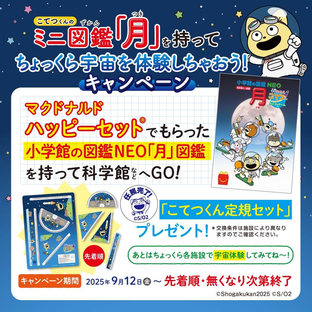 #ハッピーセット ミニ図鑑「月」を科学館などへ持って行くと、#宇宙なんちゃらこてつくん 定規がもらえるキャンペーン実施中🚀🍔 まだ交換できていないというお声を多くいただきまして期間延長します🚀 無くなり次第終了ですが、ぜひ宇宙施設でちょっくら宇宙体験を♪ takaratomy-arts.co.jp/campaign/c/81/ x.com/spacekotetsuku…