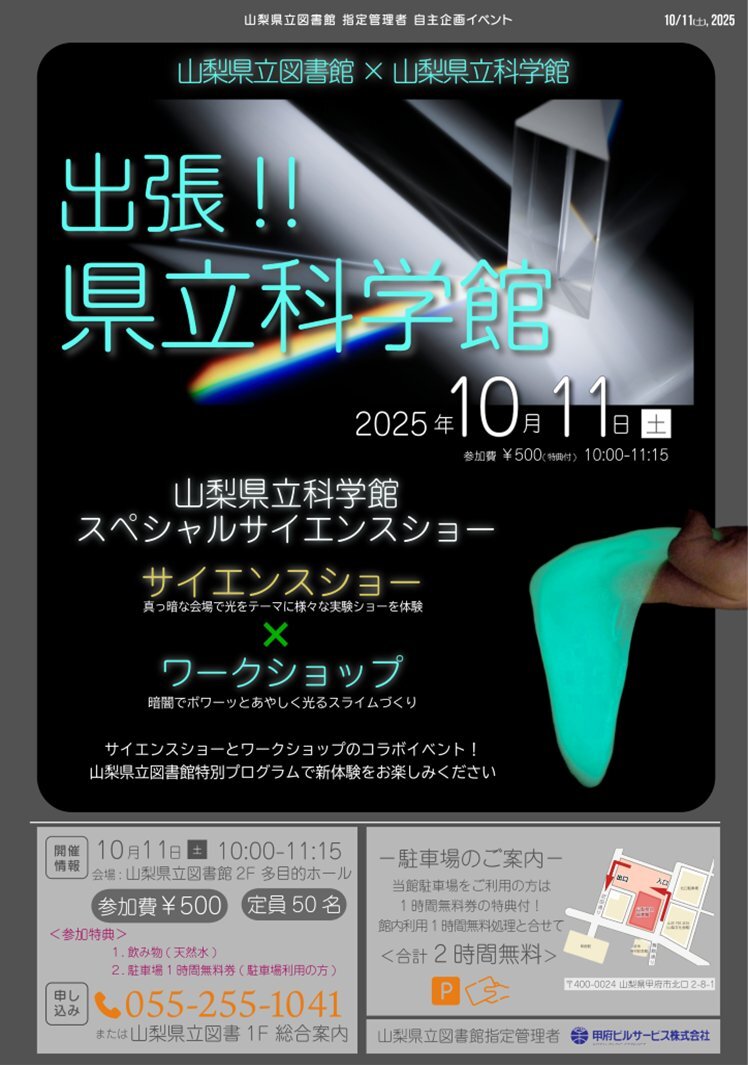 県立科学館が図書館で光をテーマにしたイベントを開催!!しかもサイエンスショーとワークショップをコラボさせた図書館オリジナルの内容です☆図書館で科学館を楽しむ新体験を一緒に楽しみませんか♪お申込み受付中です #山梨県立図書館 #山梨県立科学館 #山梨イベント #山梨 lib-yamanashi.jp/2025/091914522… pic.x.com/0Wxu2dAQt3