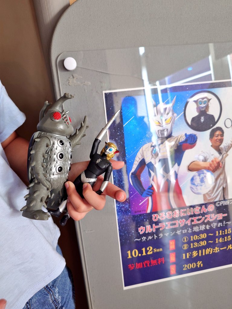 待望の山梨県にウルトラマンゼロが来てくれたがショーの画像はSNSにup禁止だったの。だから地元山梨で見れたらと強い願望でゼロにあったのは夢だったかもかもしれない… #ウルトラマンゼロ #マグマ星人 #山梨県立科学館 pic.x.com/Je2ZdjHKM1