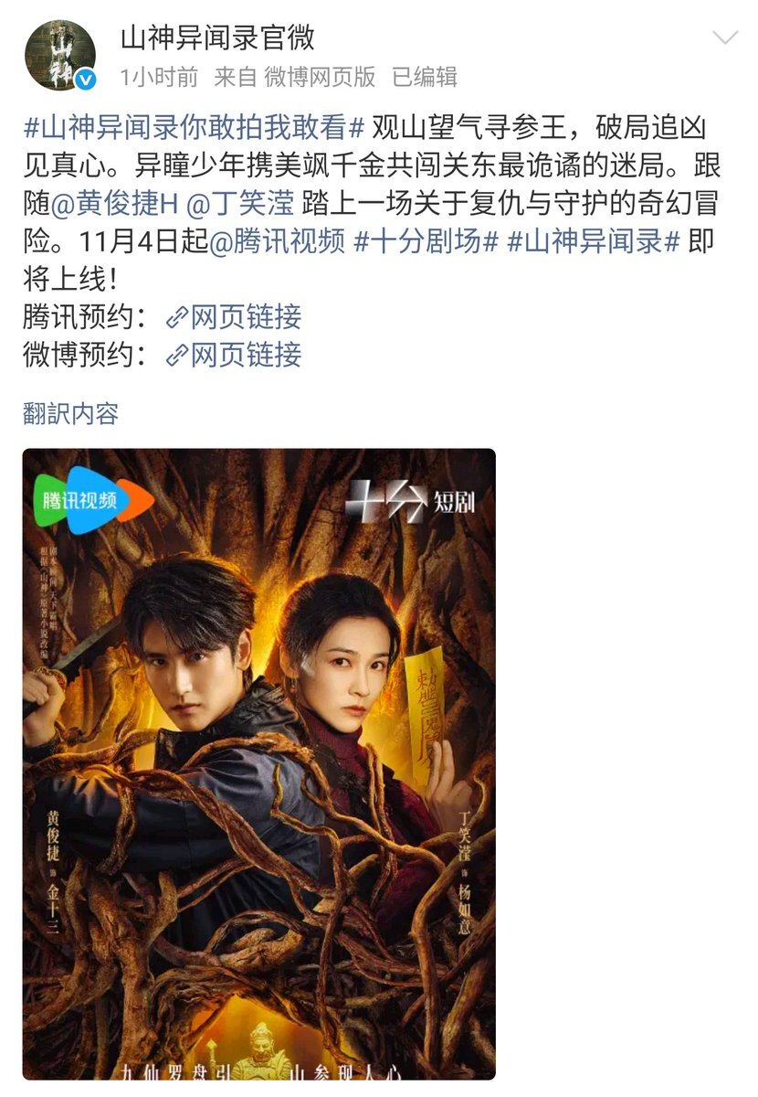 #山神异闻录 定档🎊 🐧11/4~ これも来た😂 短剧だからいける…! #黄俊捷 pic.x.com/DIEgbbMYXQ