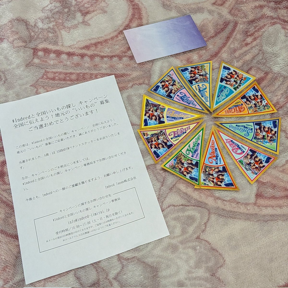 Indeed(@IndeedJapan )様のキャンペーンの、A賞LE SSERAFIM(@le_sserafim_jp )ペナントステッカーが当選して、今日届きました📦️ 10種類もあって豪華すぎます✨️ ありがとうございます🙏 #Indeedと全国いいもの探し #岐阜の仕事探しはIndeed #いい未来は探せる #A賞 #LE_SSERAFIM pic.x.com/9h3EET5fKn