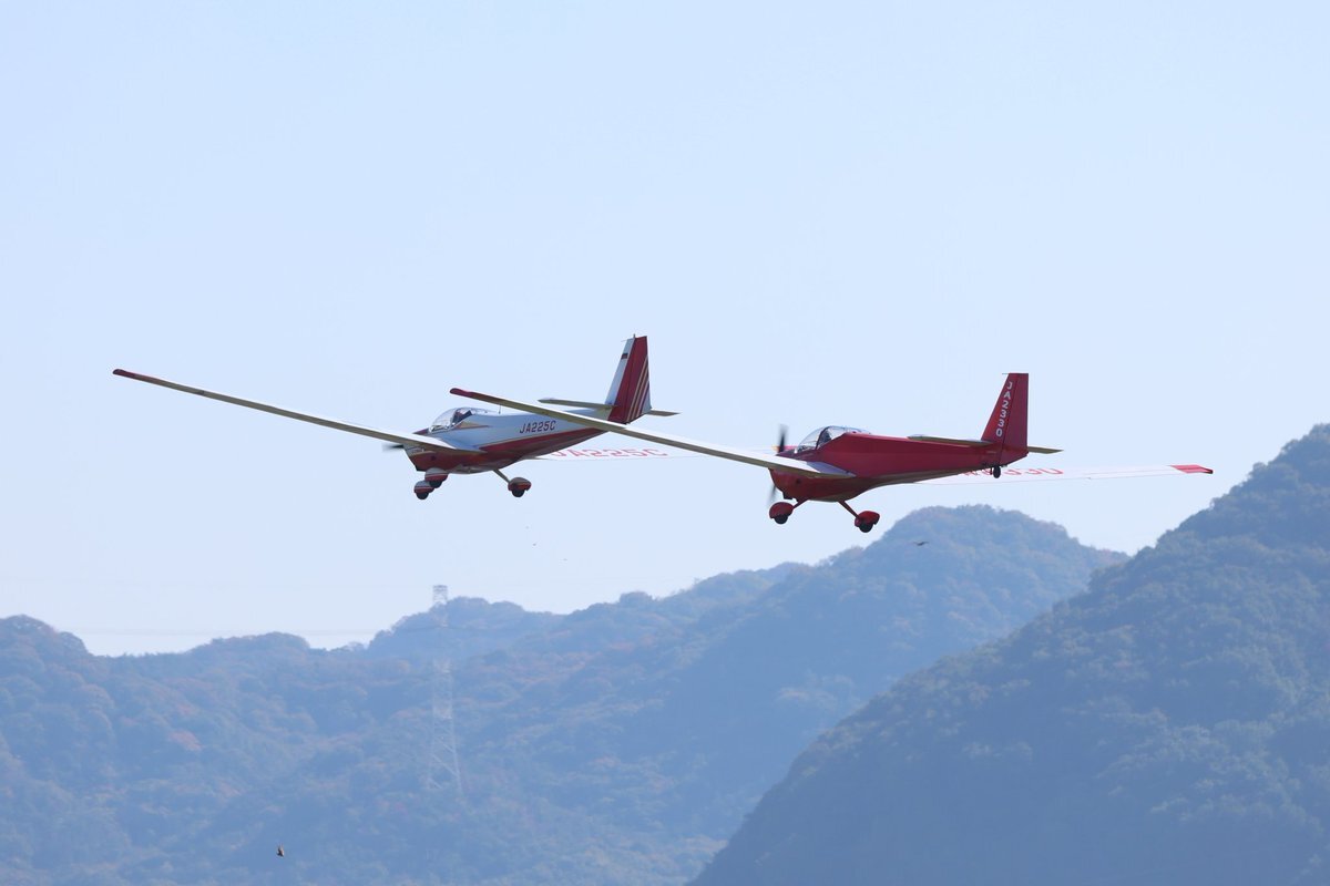11/16 その3 体験搭乗で演目時間帯以外ほとんど飛んでいたロビンソン×3 フォーメーションて離陸するモーターグライダー、その後それぞれの演目へ 間でシーラスの外来、そしてピッツの曲技飛行(逆光で申し訳ない🙏) #岡南飛行場祭り pic.x.com/YPCbQJsMYP