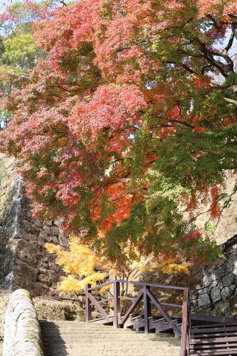 《国指定史跡 岡城跡 紅葉情報》 岡城跡の紅葉は全体的には3分~5分程度です。 木によって違います。 赤く色づいている木もあります。 (撮影:2025年11月14日) その他の写真は⏬ taketa.guide/topics/detail/… #大分県 #竹田市