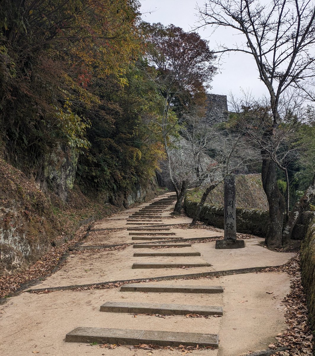 紅葉が美しい岡城跡にこんなオルレ(韓国)マークがいっぱいあるんですわ。自ら史跡の価値を下げている #竹田市