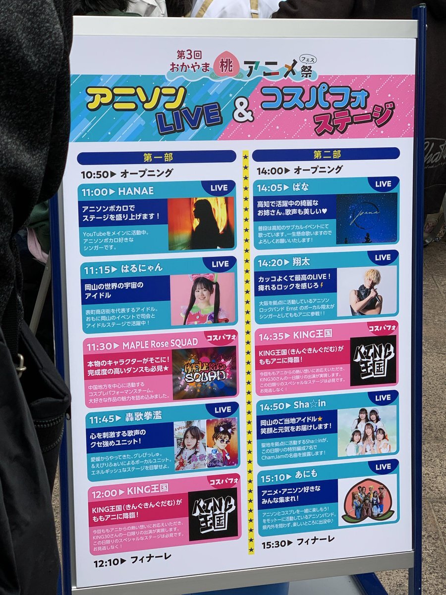 🌸いよいよ明日🌸 「第3回おかやま桃アニメ祭」が開催! 声優さんのトークに、アニソンLIVE、コスプレ街歩き、痛車展示、キッチンカーや物販など… 表町商店街が、1日まるごとアニメの世界に♪ みなさんのご来場を心よりお待ちしています☺️ #ももアニ #岡山表町商店街 pic.x.com/Z9JN5RY2qg