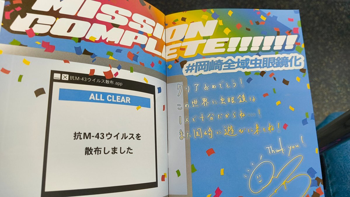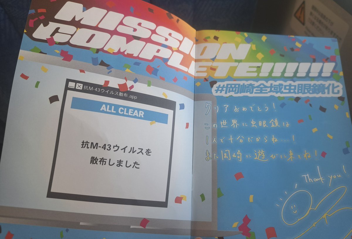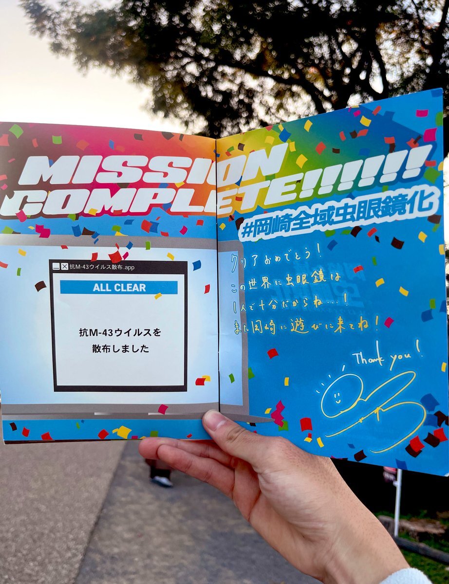 クリア!千円とは思えない満足感! 岡崎城公園駐車場で虫さんが手振ってくれたんだけど まさかの同日にプレイされてたみたい! 激アツイベントだった〜 #岡崎全域虫眼鏡化 pic.x.com/AtNQjn918g