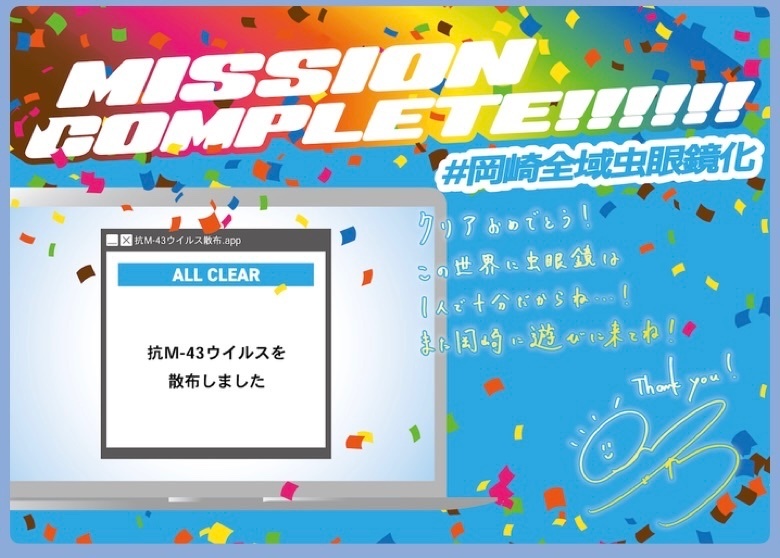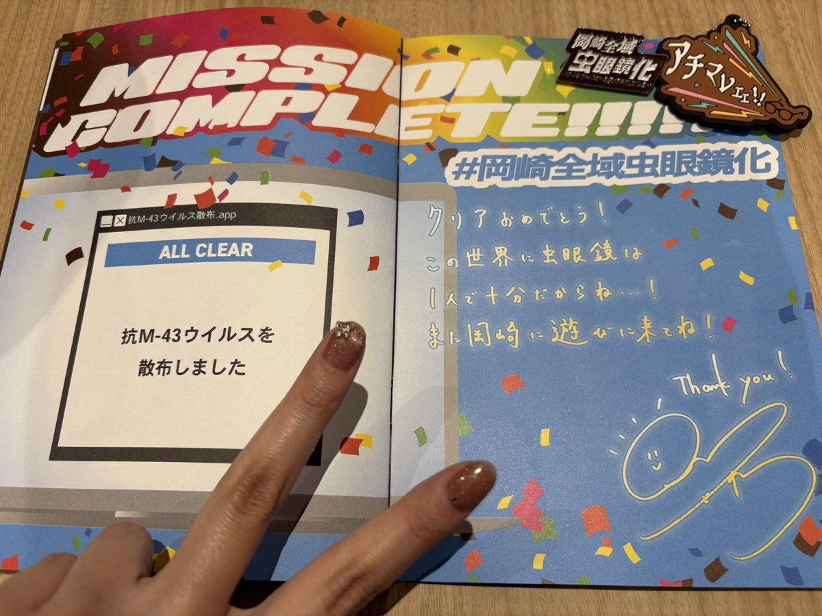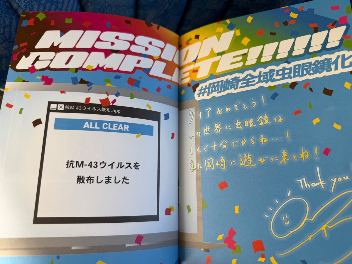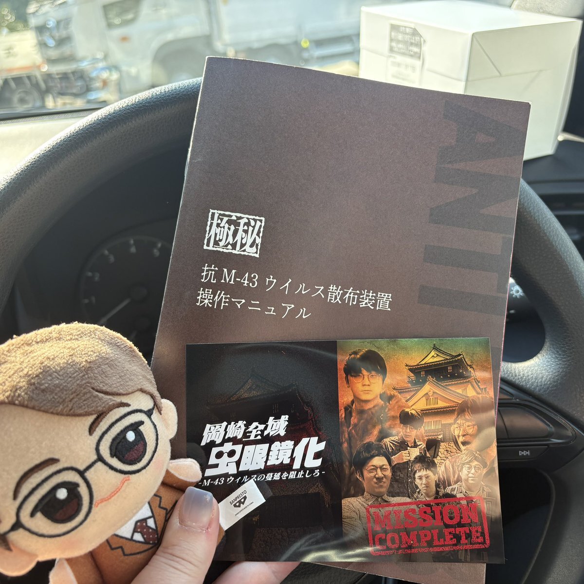 クリア!千円とは思えない満足感! 岡崎城公園駐車場で虫さんが手振ってくれたんだけど まさかの同日にプレイされてたみたい! 激アツイベントだった〜 #岡崎全域虫眼鏡化 pic.x.com/AtNQjn918g