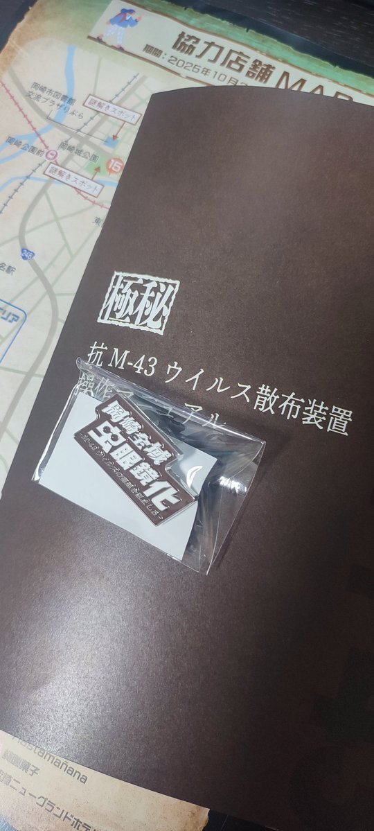 岡崎市周遊謎解き「岡崎全域虫眼鏡化 ~M-43ウイルスの蔓延を阻止しろ~」を開催します🔍 1 期間 令和7年10月3日(金)~11月30日(日) 2 受付場所 TOKAI ONAIR OFFICIAL STORE 岡崎城公園店(康生町) 3 参加料 1,000円 イベントの詳細は「岡崎おでかけナビ」でご確認ください! #東海オンエア