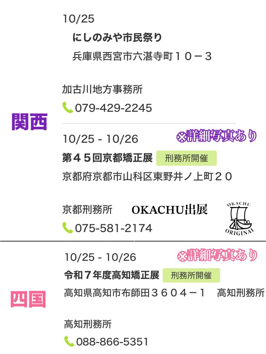 ⭐️ 今週のイベント ⭐️ 今週も各地で矯正展‼️ まだ行けてない方も是非! ★イベント情報 →e-capic.jp/event/#area5 ★ネットショップ(Okachu Original) →okachu.base.shop #刑務所 #刑務所作業製品 #矯正展 #キャピック #capic #岡忠 #okachu #ブルースティック #マル獄 pic.x.com/aB7tg5csvi