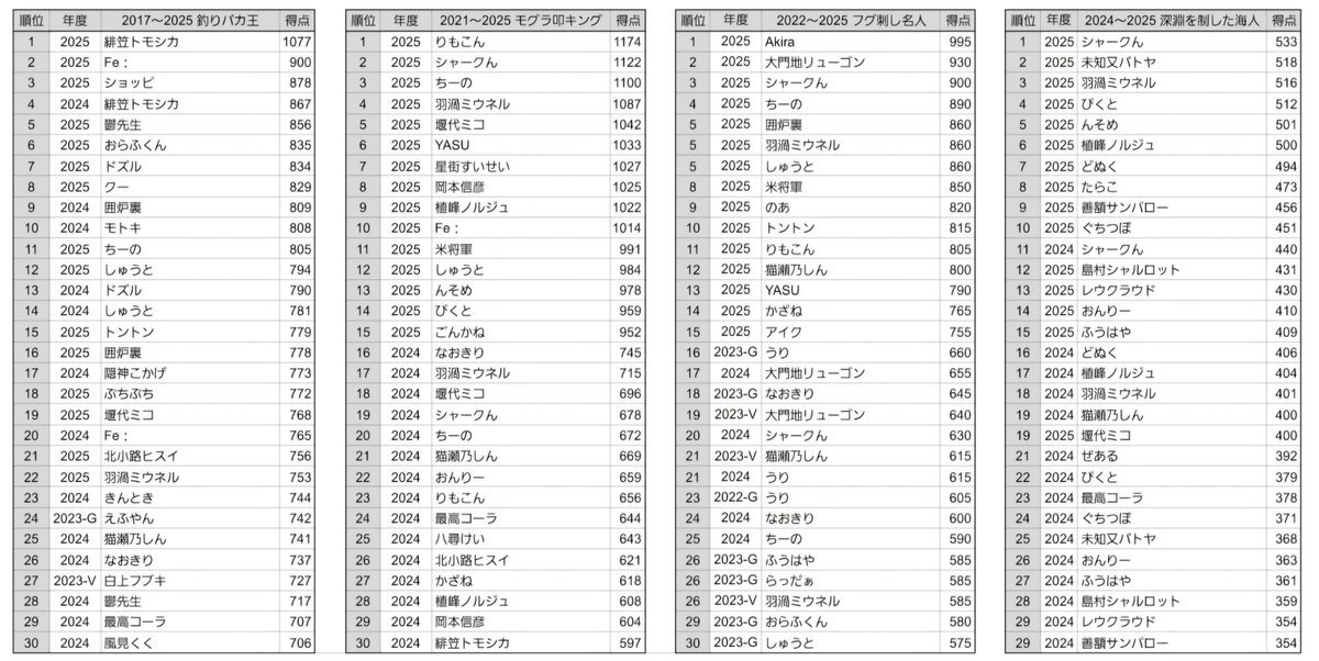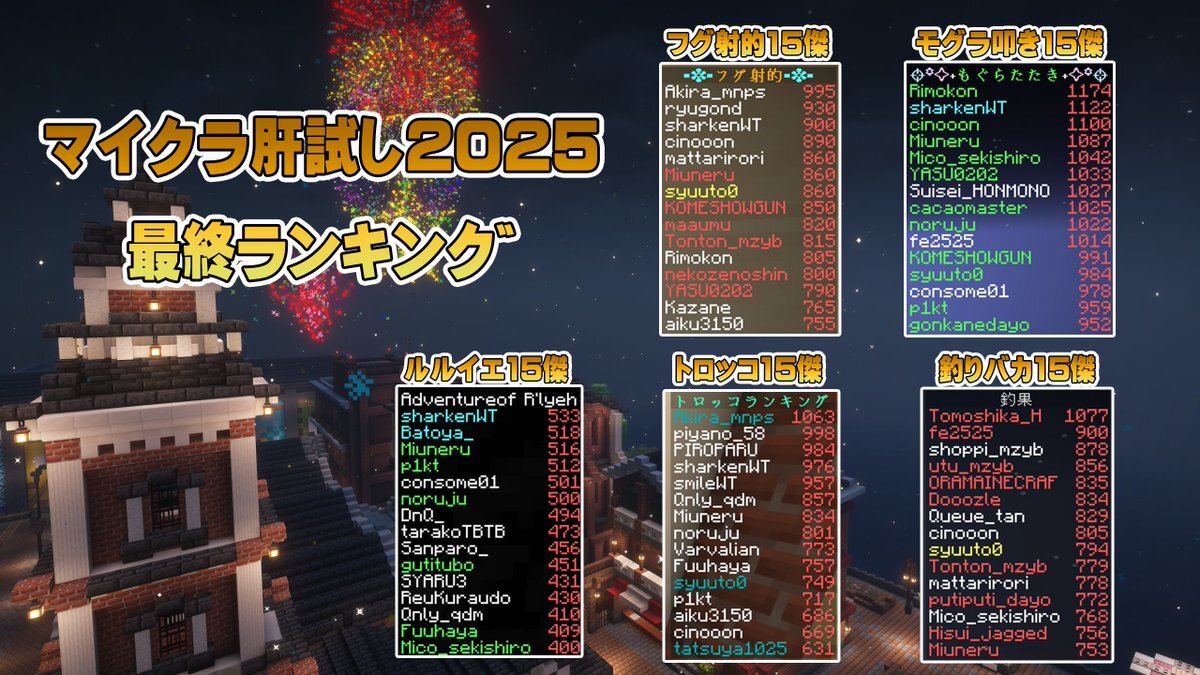 新たな歴史が、また1ページ #マイクラ肝試し2025 各ランキング上位15名です。 今年も激熱展開だった! #ありがとうマイクラ肝試し