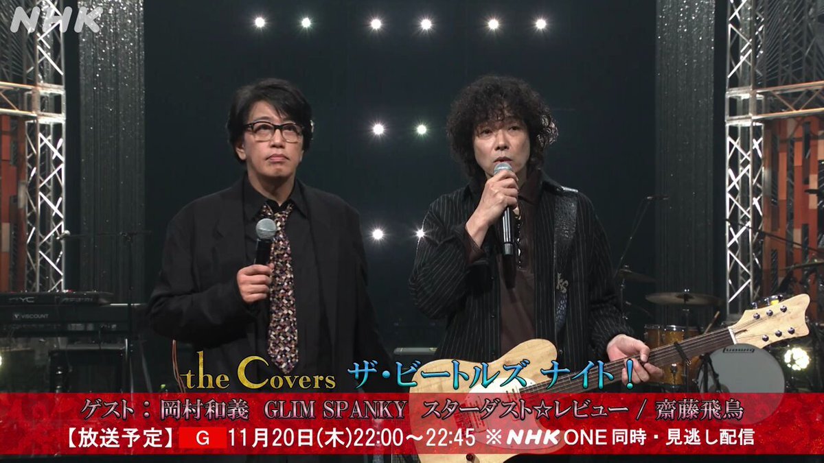 【地上波🍏#カバーズ SP】 ザ・ビートルズ ナイト 📺11/20(木)22:00~総合 #岡村和義(#岡村靖幸×#斉藤和義) ♪カム・トゥゲザー 見どころご紹介🎥 2人のまったりトーク& 和義さんのギター初公開🎸 #GLIMSPANKY #スターダストレビュー #齋藤飛鳥 #リリー・フランキー #上白石萌歌 語り #堂本光一